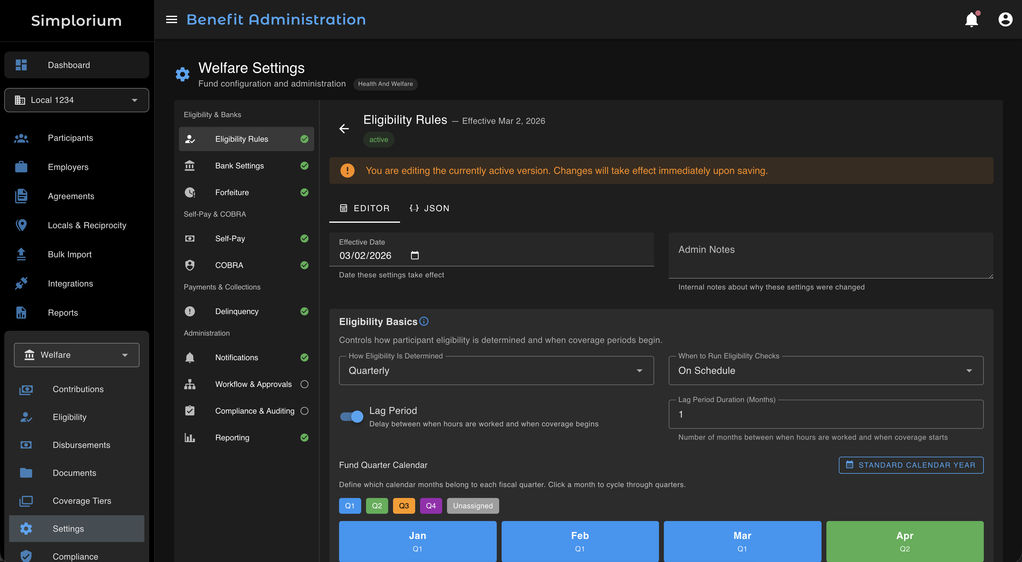Define your fund's eligibility rules once. Simplorium applies them automatically as contributions flow in — hour banks, dollar banks, self-pay windows, COBRA triggers. Members know their status in real time. Your staff stops fielding calls.
